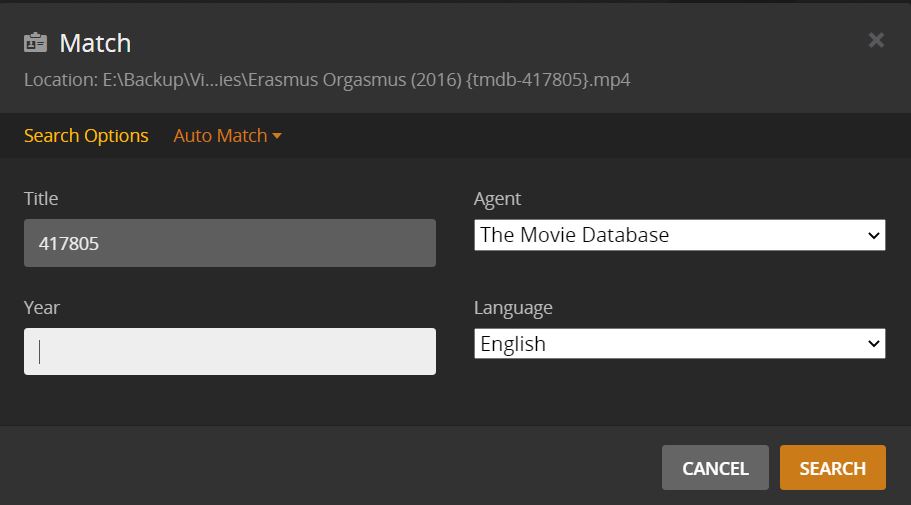 For some reason Plex is struggling to tag some of my Adult movies that already have robust TMDB tags. They aren’t on IMDB, but I don’t know why Plex is still struggling despite me using the correct filenames to force Plex to fetch from TMDB: Erasmus Orgasmus (2016) {tmdb-417805}.mp4. Is there anything else I could do?