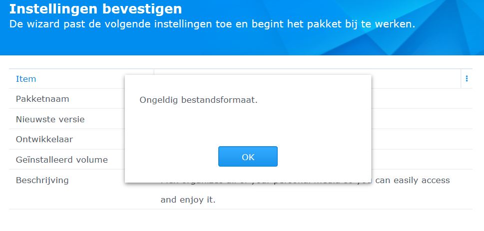 Several times i tried too install the 64 version but every time Synology DS416 Play it gets me the following message “ONBEKEND BESTANDSFORMAAT” what must i do? Sorry for my bad English…