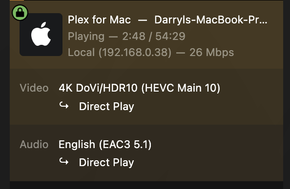 And I will again confirm that Plex is delivering the media via Direct Play and not transcoding.