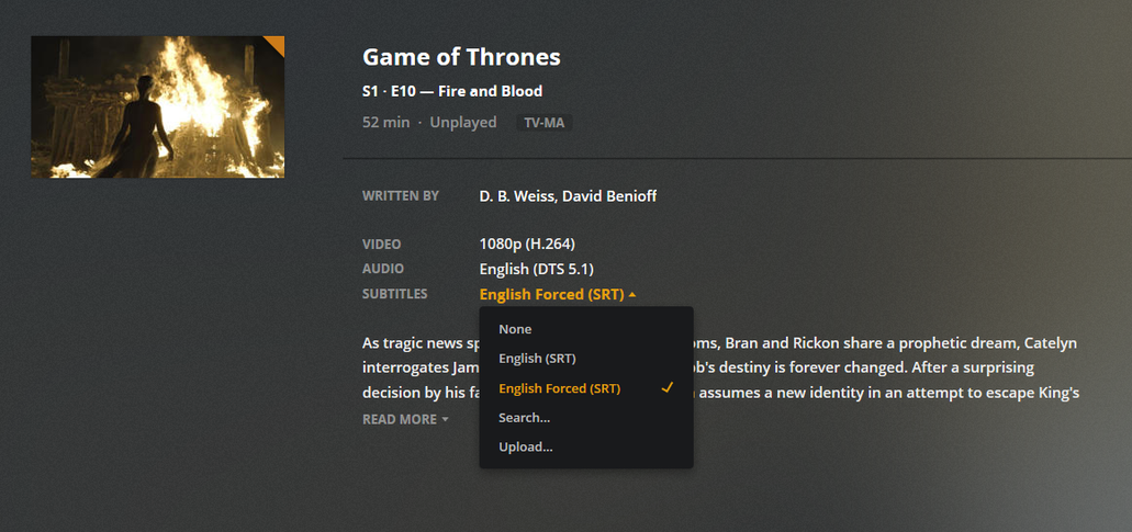 Yes I do. I attached a couple screenshots. This episode in particular I removed and did the Plex dance to check but it still defaults to the forced subtitles.