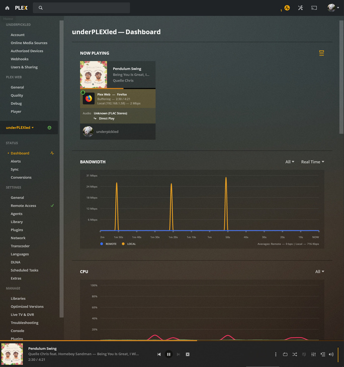 What I also noticed when it starts spinning for buffering the real time stats in the dashboard will drop to 0 Mbps.