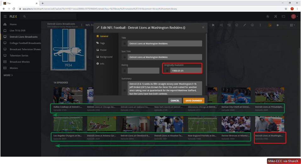 Not specifically related to this, but … I have been recommending users switch to using the Personal Media Shows agent for NFL and other sports recordings - creating a tv library for sport and editing advanced settings switching the agent from theTVDB to Personal Media Showd
