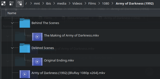I’m following the guide for Local Files for Movie Trailers and Extras but the file “Deleted Scenes/Original Ending.mkv” with a title of “Original Ending” set in the metadata is being shown only as “Ending” instead. How can I make Plex show the correct title?