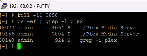 Then I startet putty and checked disabled Apps: → Plex disabled