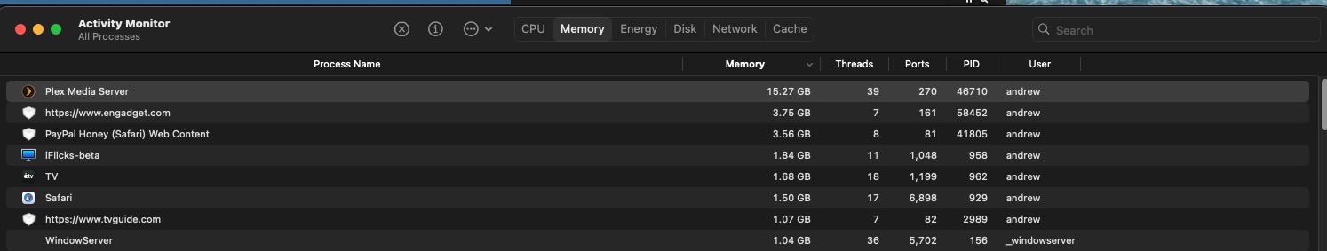 Hi, I’m wondering why Plex server running on Mac Studio with macOS 14.1.2 starts consuming so much memory after a while.