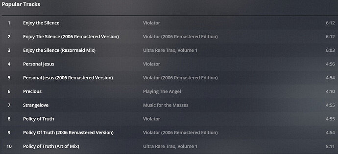Hello, i’m having problem with “Favorite Songs” list. Like the best 5 songs. It automatically picked live versions of song because i have some live albums and collections. I tried to edit their metadata and hope it will switch to the studio album version but it didn’t. It switched to another collection album version. Did someone found a fix for this?
