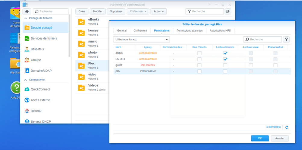 Les autorisations étaient déjà cochées. J’ai redémarré le serveur plex puis le nas.