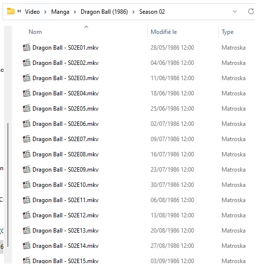 J’ai un repertoire Manga avec mes séries. Pour mes tests, je n’ai mis qu’une seule serie. J’ai suivit les régles de nomages des fichiers.