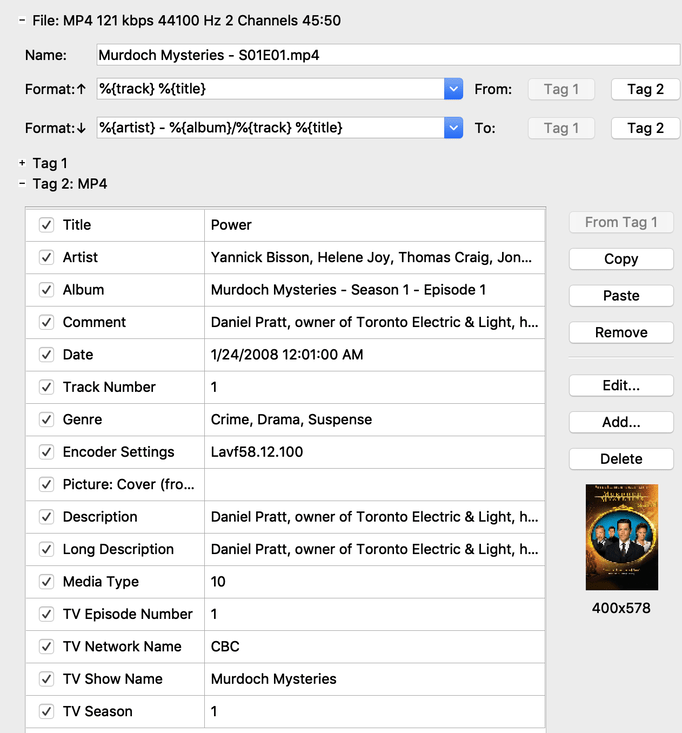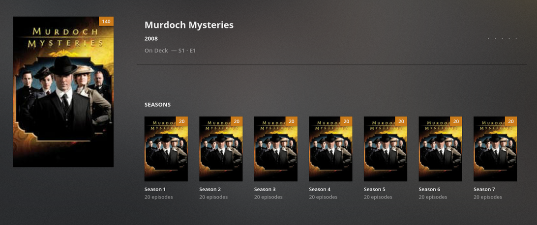 All appear named in an identical manner. TinyMedia Manager recognised them all, and added thumbnail images and .nfo files for all episodes.