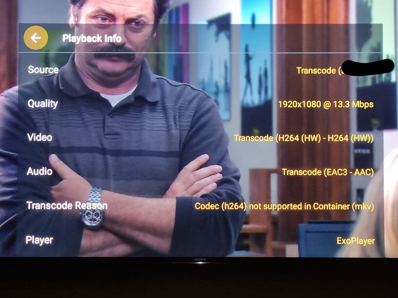 When testing the exact, same content that Direct Played just 24-48 hours ago, Plex on the Shield reports “Transcode Reason: Codec not supported in Container (mkv)” for all files played via Direct Play without issue. As shown in the below screenshots, Plex on the Shield reports transcode or copy for all fields and PMS Dashboard on Windows shows “Direct Stream.” Obviously, attempting to launch any subtitles locks video playback in an endless buffer cycle.