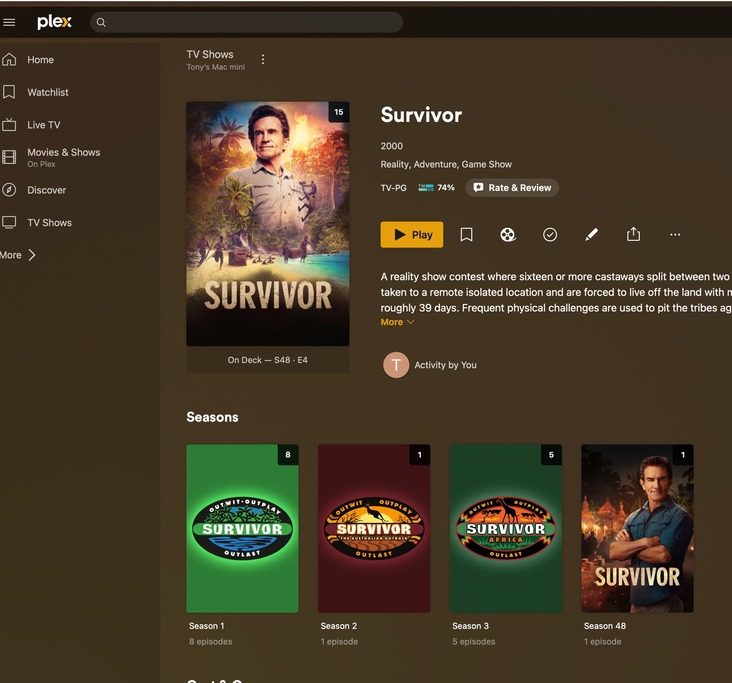 I’m not sure that this will help, but one screen shot shows the downloaded file on my external drive (Found S02E16) and the second, where it appears in Plex (Survivor Season 2). This is symptomatic of most files as the only Survivor episode I have is the one in Season 48. Those appearing in Plex in Survivor Seasons 1 and 3 are also other non-related programs.