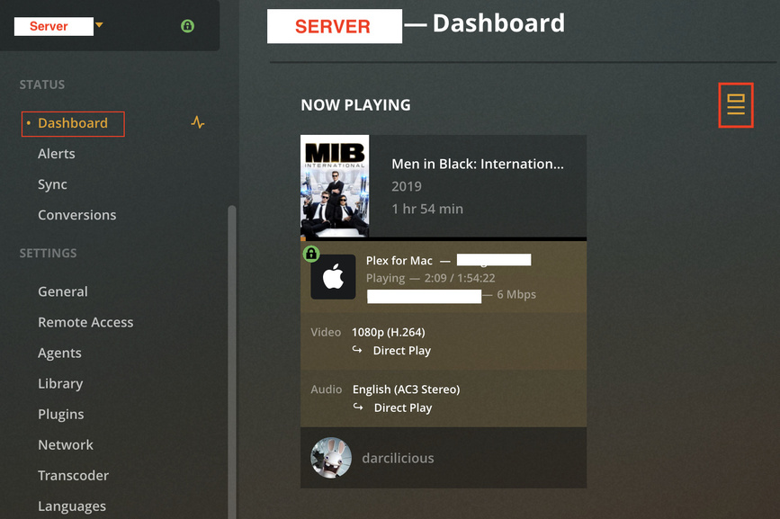 During playback on Plex player on your Mac, go to https://app.plex.tv/desktop, click on Settings (near the upper right corner), then on the scrolldown to your Server, and then below that, click on Dashboard. Post a screenshot of the Now Playing section (expanded), like this:
