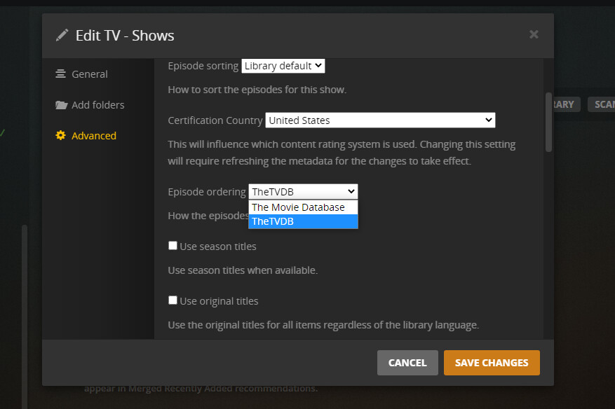 I recently have been victimized by Plex’s Blanket decision to use TMDB for TV Shows.