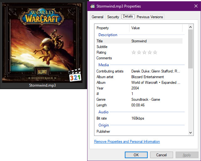 Here is the file in Windows Explorer. It has a title, it has multiple artists, it has embedded artwork.