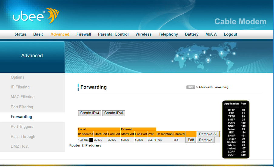 I’ve checked the ports with the Port Forwarding program and that still says that the ports are closed for both 32400 and 50000. I have also tried adding the external IP address to the forwarding tab for Router 2 but get an error that says “IP subnet should be the same as LAN subnet”