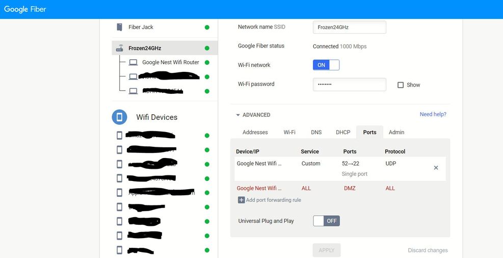 I worked with Google Wifi Help Desk about my Google Nest Wifi working with my internet provider Google Fiber router box to get Remote Access working on PLEX while on the Google Wifi Network.