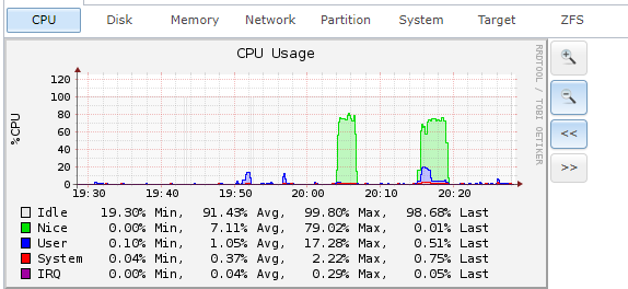 I did attach a couple of screenshots to show you what I see on the server side, I have a freenas on which my plex server runs, and it has a Intel(R) Xeon(R) CPU E3-1265L v3 @ 2.50GHz as reference, so a pretty decent cpu. Yet for a simple 720p transcode, it makes my cpu almost max out for 5 minutes until the full transcode is done: