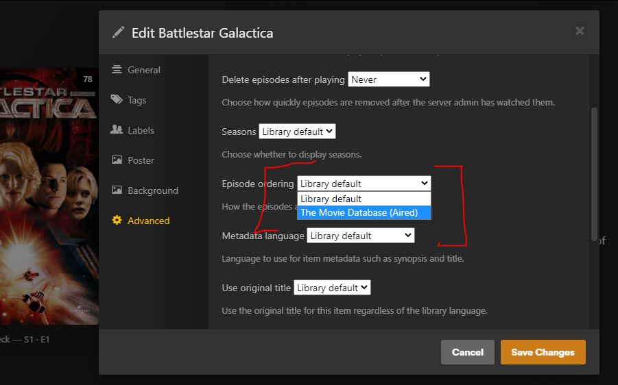 Under “Edit TV Shows” in the “Advanced” tab it has Scanner Plex TV Series and Agent Personal Media Shows, which is not what I want. I assume I should be using Plex Series Scanner and Agent = TheTVDB. Oddly if I select Scanner Plex TV Series the drop down under Agent shows TheTVDB is available but when I select it the Scanner changes to Plex Series Scanner (that seems like a bug to me).