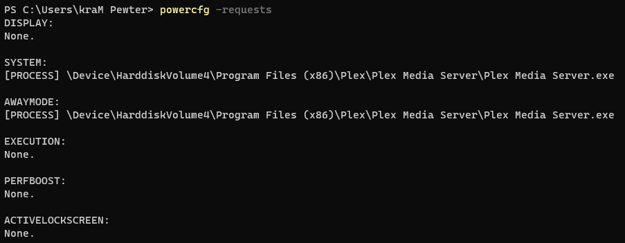 The way it used to work is Plex would keep the PC awake as long as the Plex client was open on any device (Android/Tizen/Chrome/AppleTV) I’ve tried them all and the exact same thing happens.