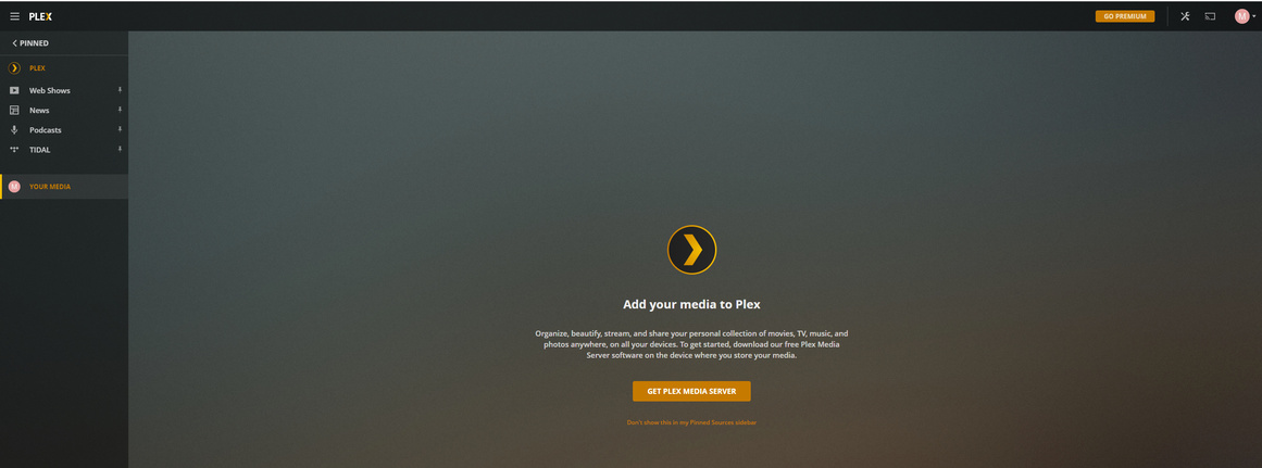 4a. Notice that media server is gone, click on “+ Your Media” gives you a “Add your media to Plex” page and “Get Plex Media Server” button