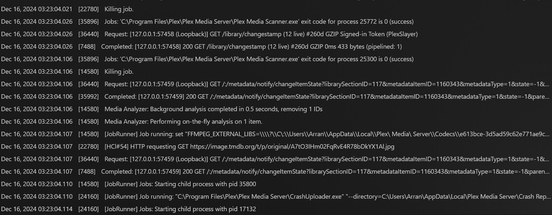 I keep meaning to learn more about understanding and intepretting the Plex logs myself but just never quite get to it… I appreciate you taking a look at it.