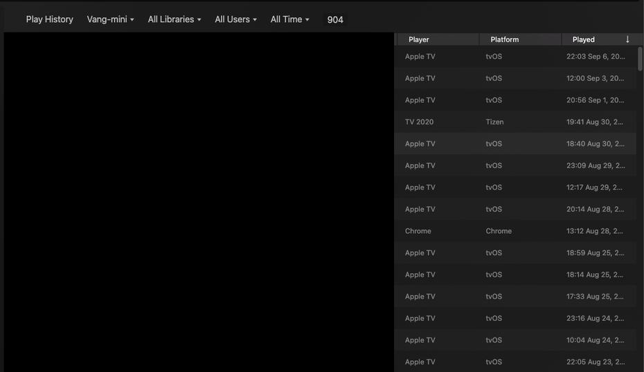 Hi. Im running my plex server on MacOS and since september 6th my server has stopped updating the “Play History” page. - Multiple files have been streamed since, and tested again right before the screenshot was taken.