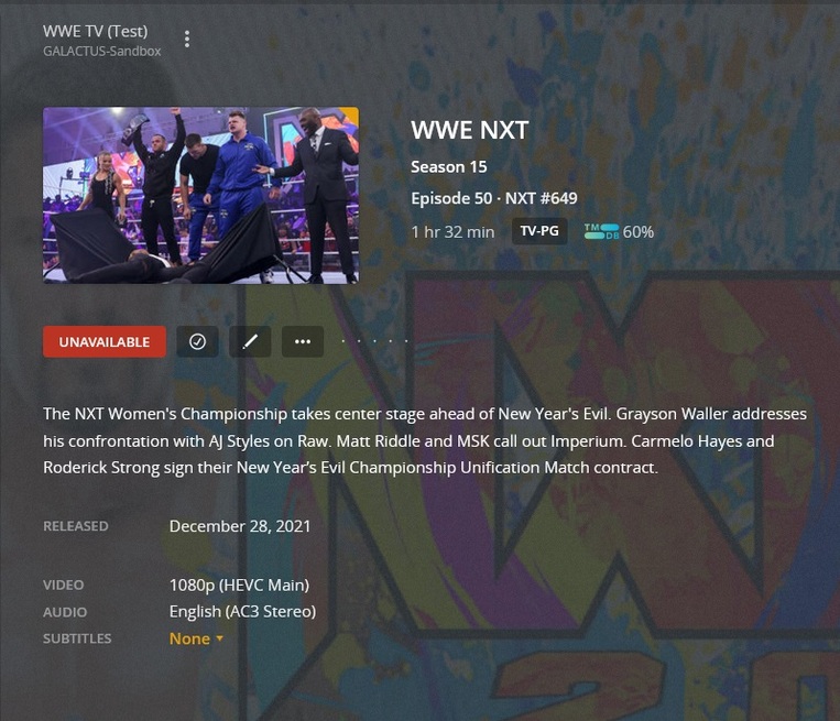 TMDB is listed as E01 - NXT: New Year’s Evil to E57 NXT 649.