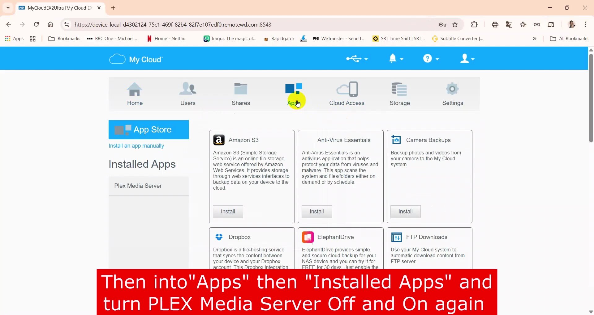 I have PLEX Media Web Server app installed on my Western Digital MyCloud EX2 Ultra and recently whenever i login to PLEX I get a message on the screen “No Content Available” so i have to login to the WD MyCloud EX2 Ultra server and under Installed Apps i have to turn PLEX App OFF then ON again then when i login into PLEX i can I see my content again. This has been happening ever since i updated to Version: 1.42.2.10156