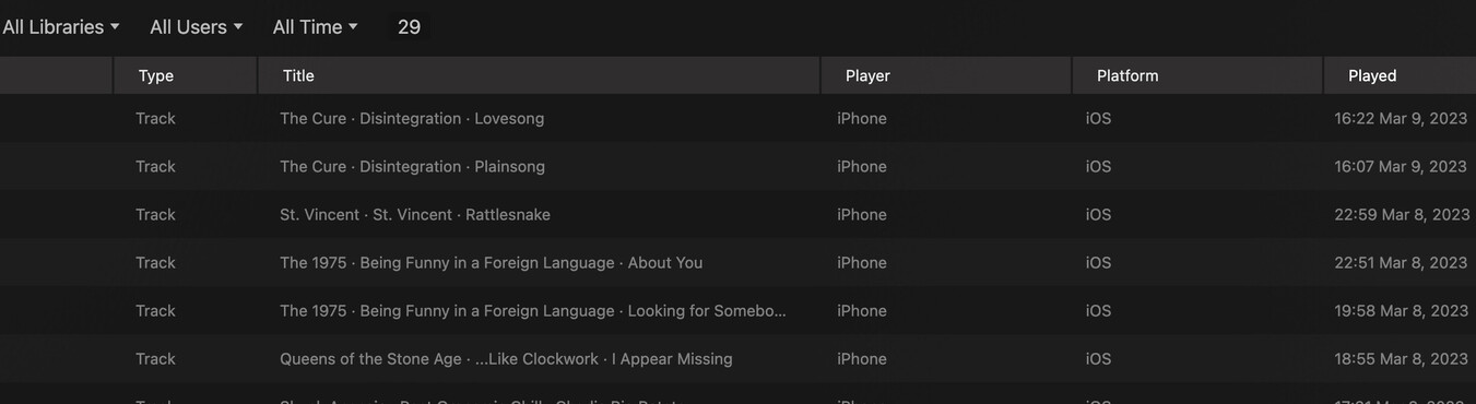 This is what I am seeing. I’ve been playing whole albums, not two songs per album.