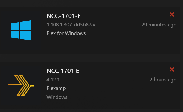 When I playback music within the Plexamp windows client the webhook data sent out from the server shows the Player Title as ‘NCC 1701 D’, when playing back media via Windows Plex Client the title is ‘NCC-1701-D’
