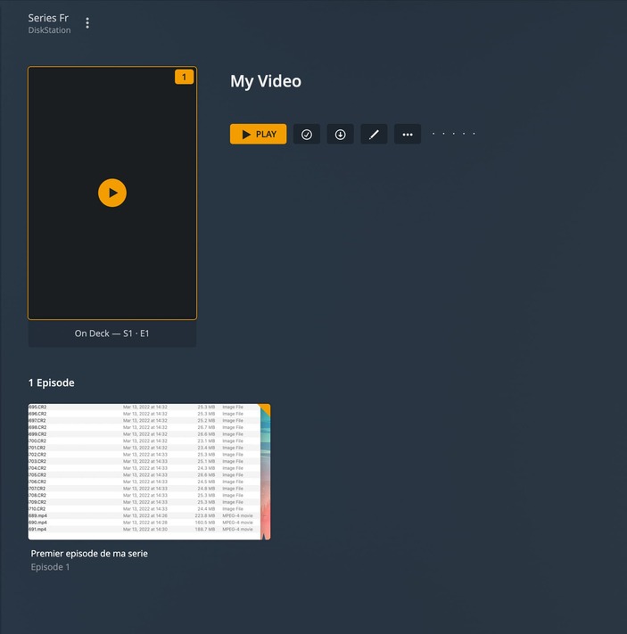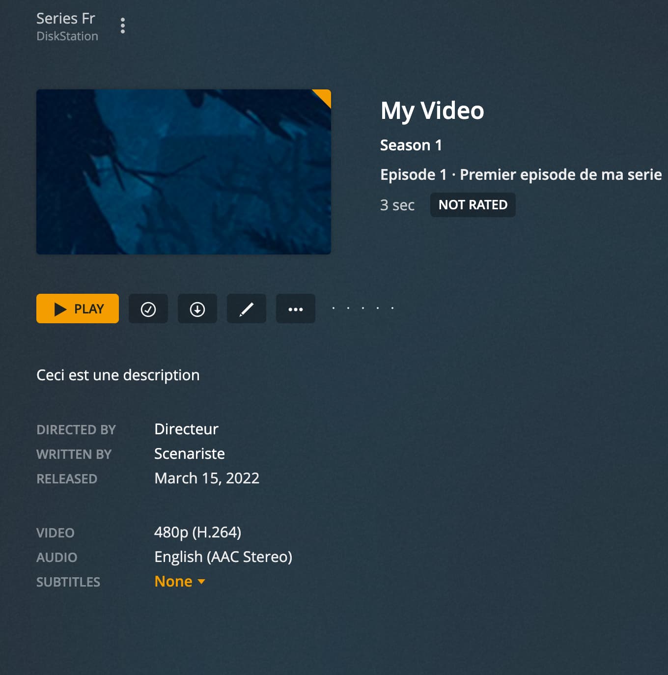 • I made a small video capture to get a .mp4 file and named it: My video S01E01 - Premier episode de ma serie