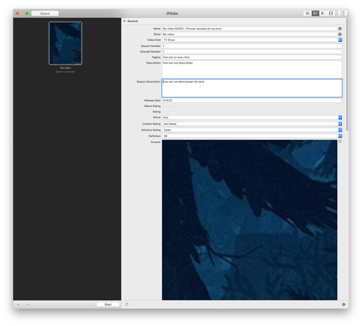 • I added metadata in iFlicks in all relevant fields (including poster, show description, actors, screenwriter etc.).