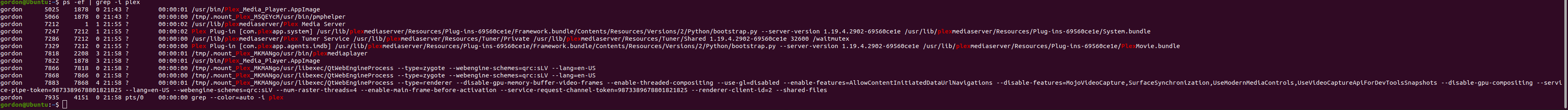 gordon 7822 1878 3 21:58 ? 00:00:01 /usr/bin/Plex_Media_Player.AppImage