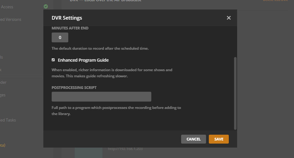 Then go to Settings -> Server -> DVR (beta) and select DVR Settings