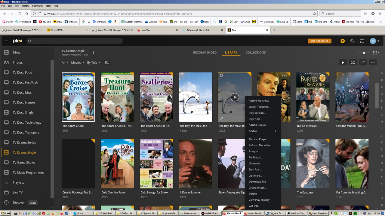 I have a number of different Plex folders corresponding to different types of programme (cinema films, TV one-off programmes, TV series etc).