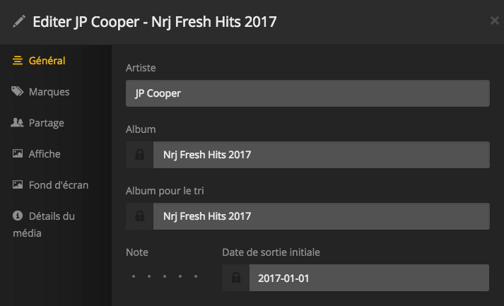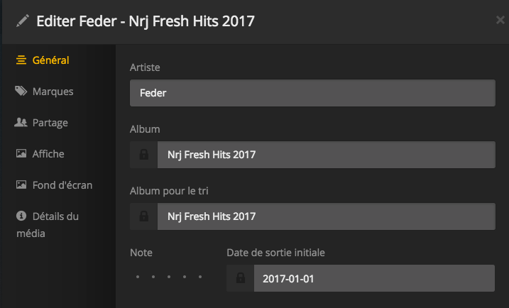 **Point important: **Plex ne sait toujours pas gérer les multi-auteurs sur une piste (pas de solution pour ça pour le moment, à part mettre chaque auteur séparé par un ; en attendant) !