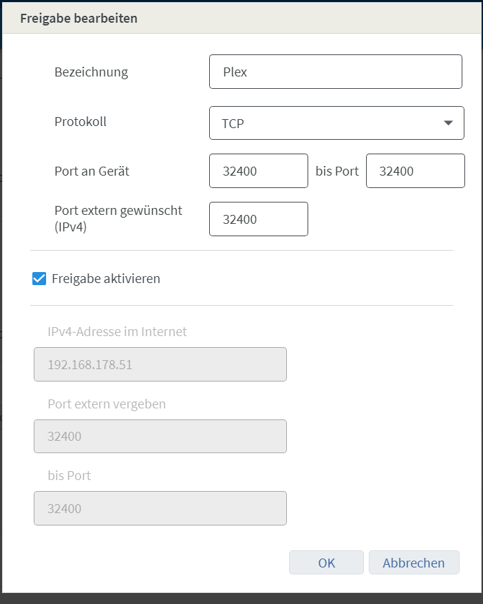 ich hab die Seite aufgerufen. Ich erhalte die IP: 5.146.193.xxx. Diese IP steht auch in Plex bei öffentlich. An der IP in der fritzbox kann ich nix ändern. Vielen Dank für die Hilfe.