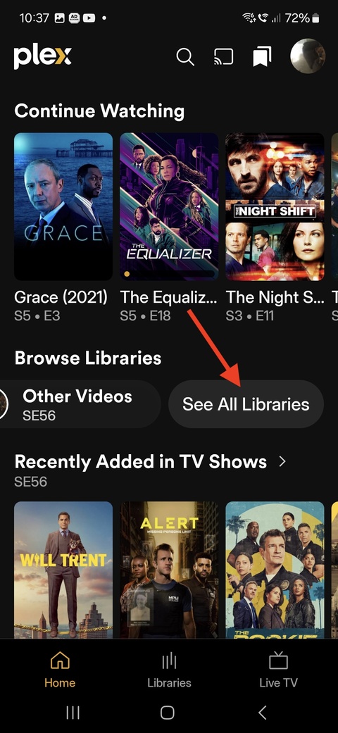 From all Libraries on the Home Page / Plex Amp