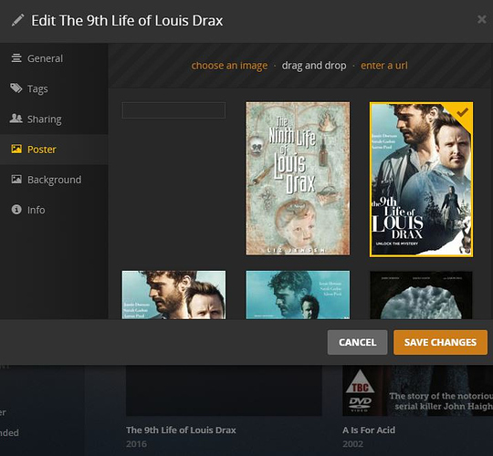 First, let’s look at 8-Ball. The fact it shows no posters at all tells me that most likely Plex has not matched the movie. If the movie is unknown to Plex then all you get for poster options are random screen shots.