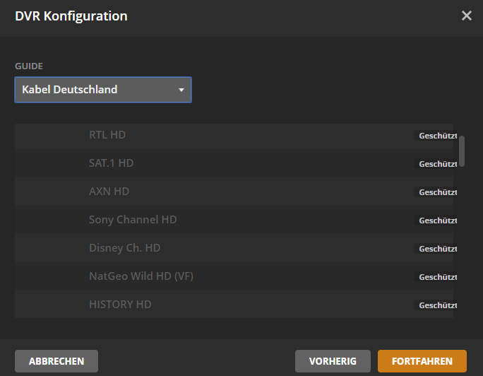 habe Unitymedia und gebe diesen auch bei der PVR Einrichtung vor den Sendersuchlauf an. Plex findet dann 376 Sender auf 2 Tuner und schaltet mit der EPF Zuordnung nur 10 Sender aktiv. Aktiviere ich die anderen Sender fehlen die EPG Kanäle, es stehen für die 376 Sender nur ca. 20 EPG Kanäle zur Auswahl. Klicke ich auf Kanäle durchsuchen ist das falsche Kabelnetz ausgewählt anstelle Unitymedia Kabelnetz Baldingen. Wähle ich wieder Unitymedia aus beginnt der Sendersuchlauf von erneut und dauert entsprechend lang. Ich drehe mich hier im Kreis. Habe den PVR auch schon ganz gelöscht bringt auch keine Verbesserung.