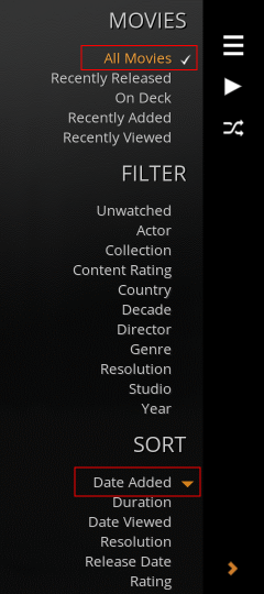 @zejedi You should still be able to sort by date added, but you have to select All Movies and then change the sort order. The Recently Added and Recently Released mode has always been disabled in PHT, we enabled it in RasPlex 0.7.1 since the default skin now support scrolling in the filter menu.