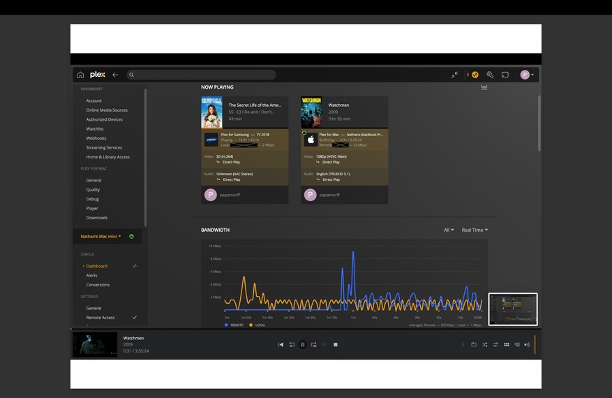 The Plex for Mac app should definitely be caching a lot more. Al though the bandwidth window would say that it’s not going very fast.