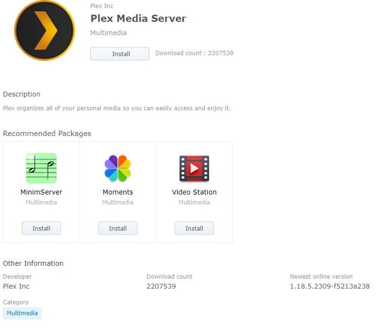 Here’s the info on the PMS available via my Synology Third-Party Packages page: