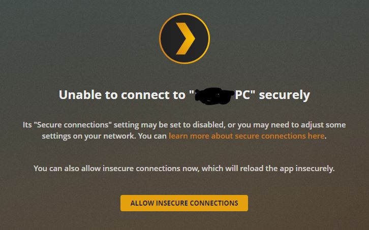 I have also tried logging into the Plex web app (not the localhost UI) from the server itself, and it shows insecure.