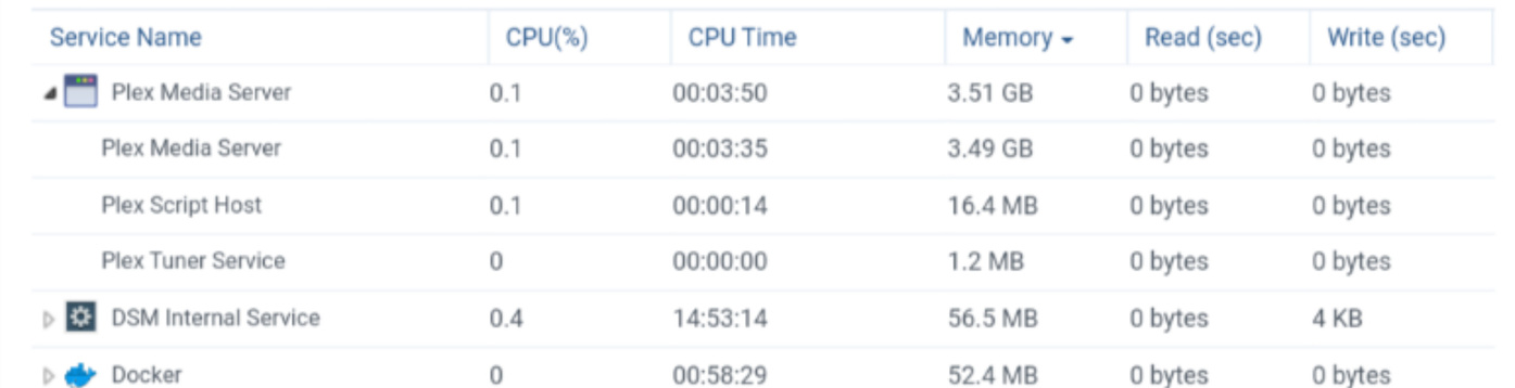 Curiously, starting at around 8pm last night DSM shows total memory usage was gradually reduced and it seems that’s all/mostly from Plex - the Plex Server is only using 1.32GB - less than it does at first startup!