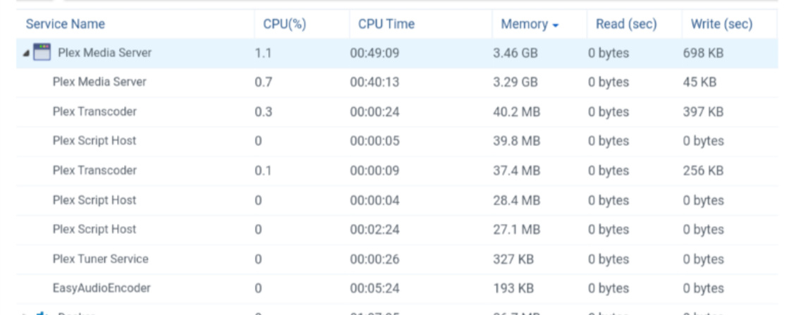 From what I have observed, memory is not freed up later on. I haven’t stopped/restarted Plex Server since this morning from the testing I did and currently Plex Dashboard is reporting around mid-40% still, as it was after the increase in the screenshot from earlier today, seen above, and Synology task manager is reporting 3.29GB for the Plex Server process.
