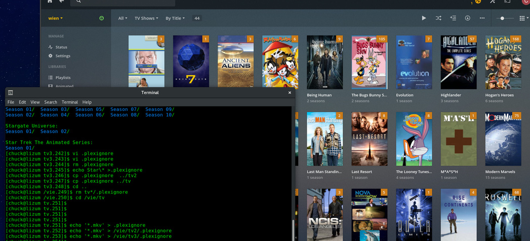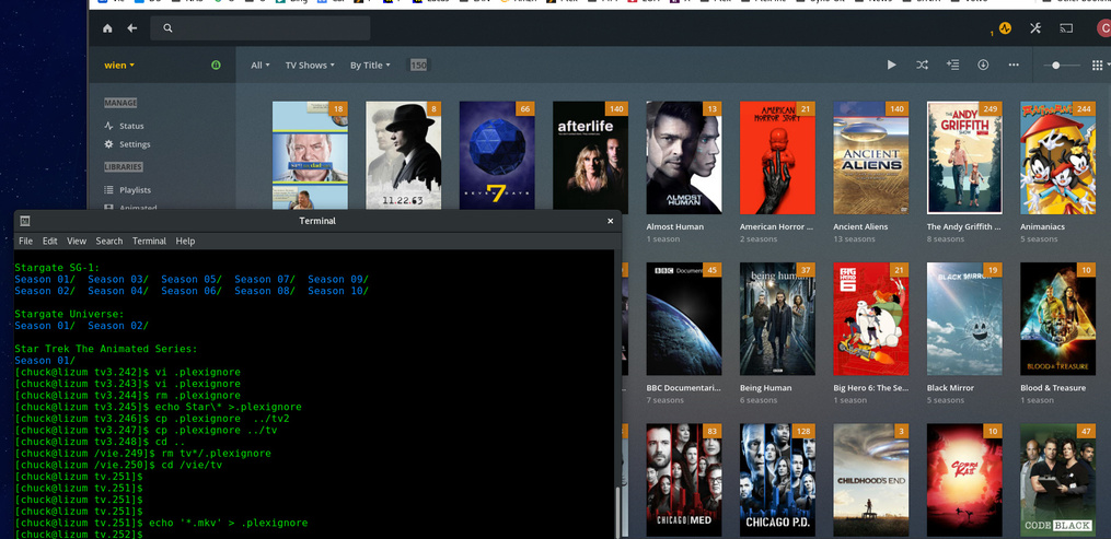 [chuck@lizum tv.258]$ cat -v /vie/tv*/.plexignore (directories: tv, tv2, tv3 respectively)