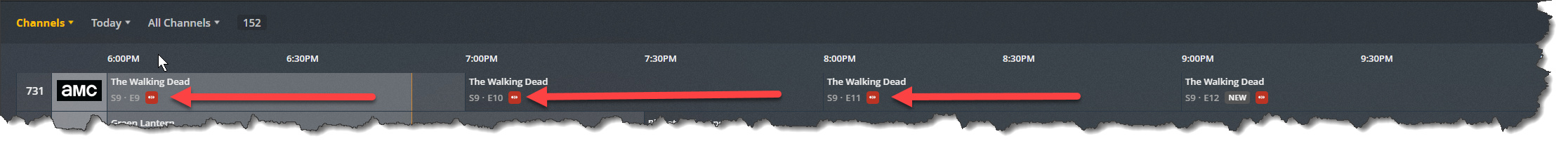 I don’t know about your duplicate 9PM recording problem, but as for incorrect recording icons in the grid guide… that is an old bug. But I was told that it is not a bug because they designed it that way. They suggested making a “feature suggestion” to get that fixed.