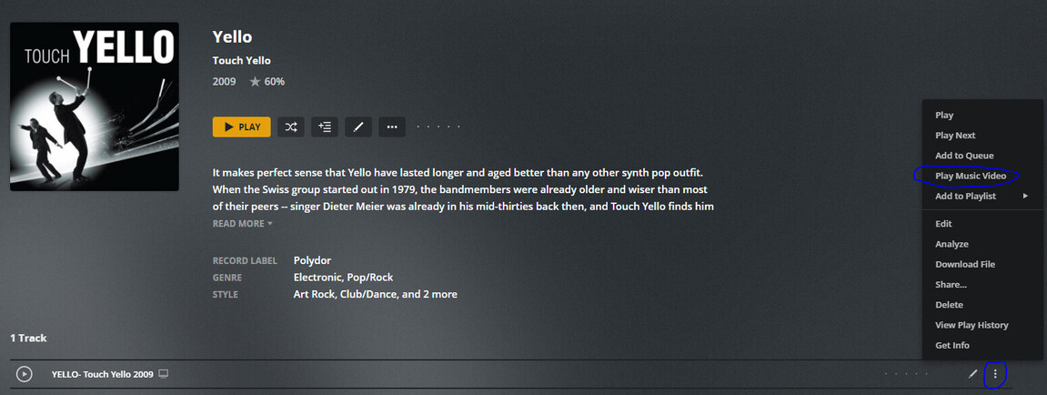 So I’ve got a question: On my Samsung TV I installed PMP from the Samsung store and I’ve been watching movies on it for quite a while. But currently I’m converting all my CDs to mp3 and Plex got me covered with the Music library, which is awesome! To have the songs sorted and to stream that music and it’s great and so on. Now for some sound tracks I have Music videos that I want to see ‘in the background’, so that, if available, it automatically shows them. On my Desktop I can select that via the 3-dots-menu and it plays the music video (Is there something like a server setting to do that by default?). But more importantly, I’m not able to find that option at all on my TV? Does somebody know how to do that?