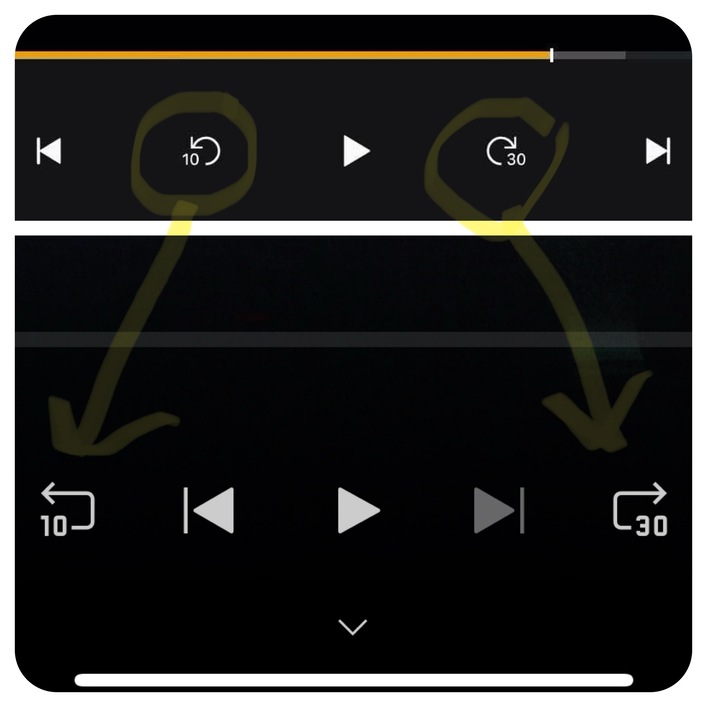 When in portrait mode the skip forward (30 seconds) and skip back (10 seconds) are not responsive.